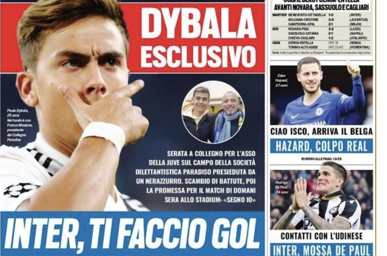 根据意大利媒体《全市场》的消息,今天出版的《都灵体育报》刊登了迪巴拉的专访,而在这次采访中,迪巴拉表示要在国米身上取得进球。
