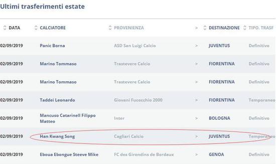 9月2日讯 根据意甲官网的消息,此前效力于卡利亚里的朝鲜前锋韩光宋加盟尤文图斯。