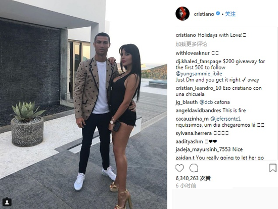 C罗发最新恩爱照6小时获赞600万+ 跟女友"反季节"!