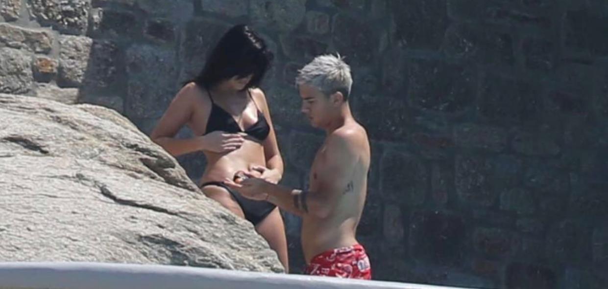 女友撒娇要抱抱 迪巴拉为她暖心涂抹防晒油 还笑着用手机拍美臀